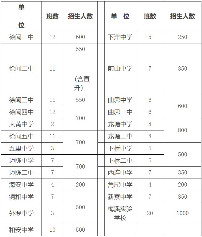 2020湛江徐闻乡镇初中招生办法(2020年湛江高中招生计划)