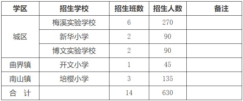 注:育才小学、蓓蕾小学、供销小学、下桥糖厂小学由于年检不合格,处于整改阶段,暂不列入招生计划,如在2020年8月31日前整改合格,通过验收则可招收新生,新申请办学的民办学校如在8月31日前取得办学许可证,可招收新生。