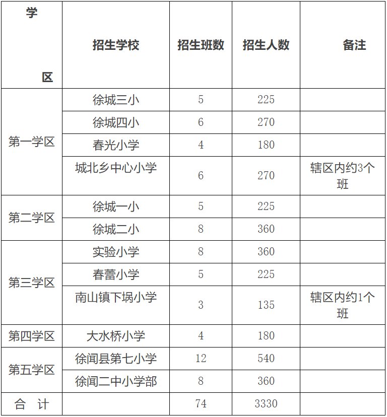 (四)县城区公办学校招生区域。2020年列入县城区招生的义务教育公办小学12所,根据今年县城区适龄儿童的情况及小学分布状况,为了确保学生相对就近入学,今年把县城区划分为五个区域进行小学招生入学。具体区域划分如下:(具体见《徐闻县县城学区划分图》)
