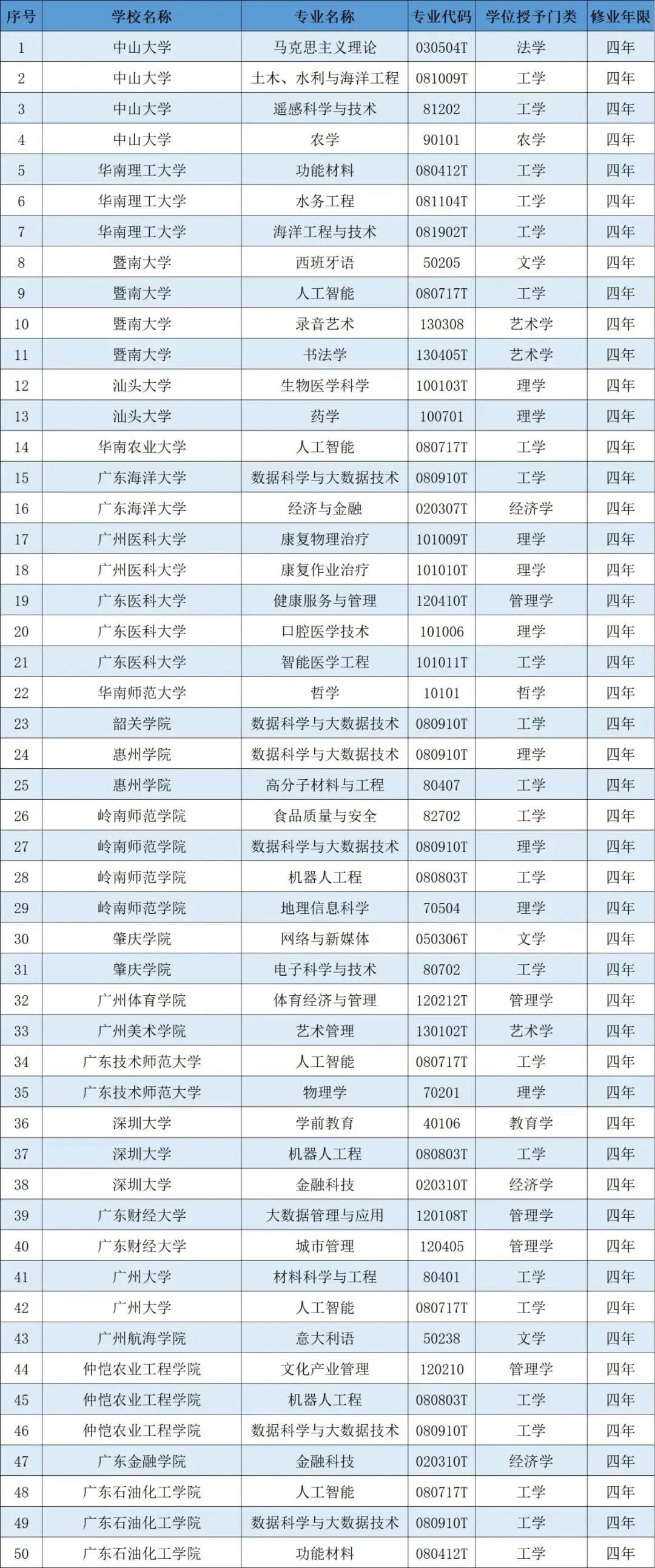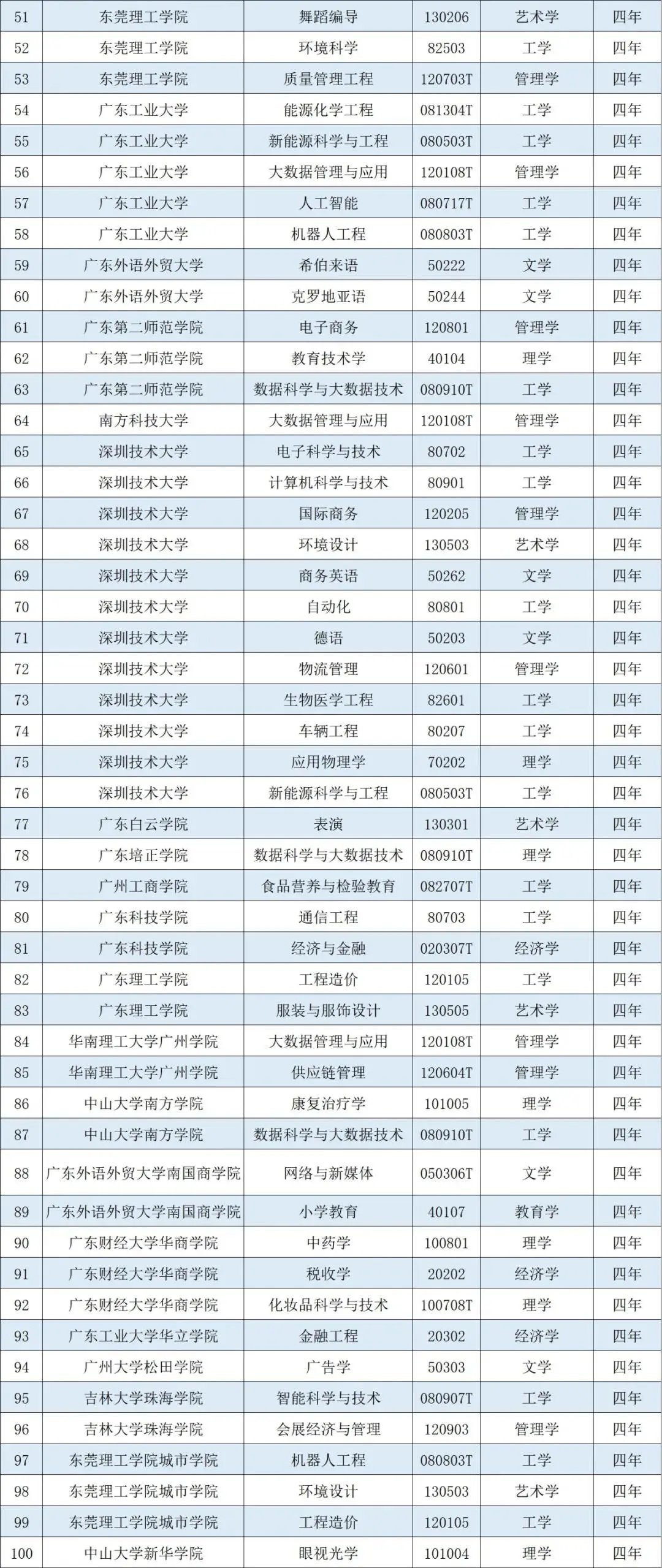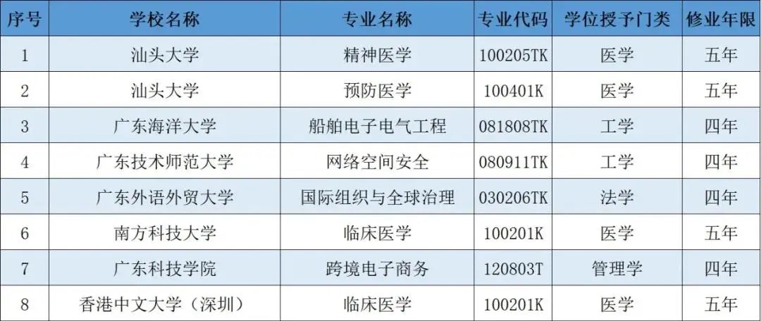 其次,“新医科”专业进一步展现。高校新增医学专业15个,集中在广东医科大学、广州医科大学等医科院校。新增医学专业中,涌现智能医学工程、康复物理治疗等6个“新医科”专业,更加体现高校医学专业人才培养从治疗为主,到生命全周期、健康全过程的大健康理念的转变。