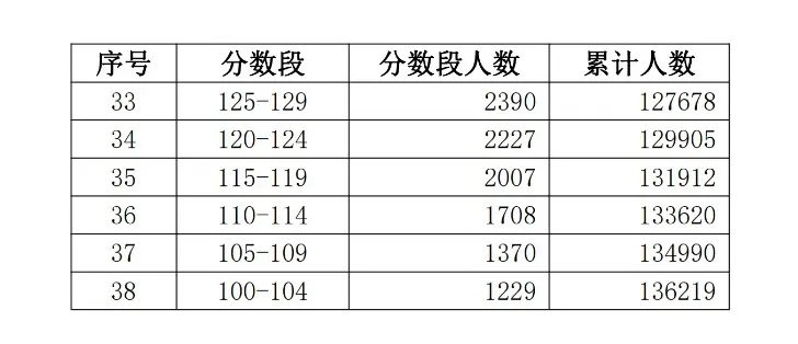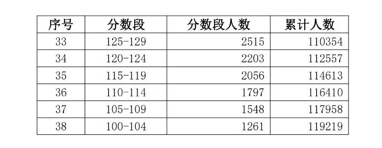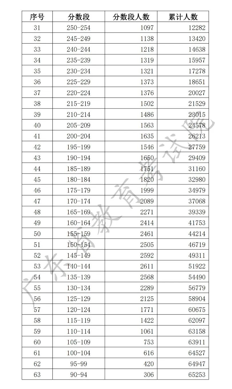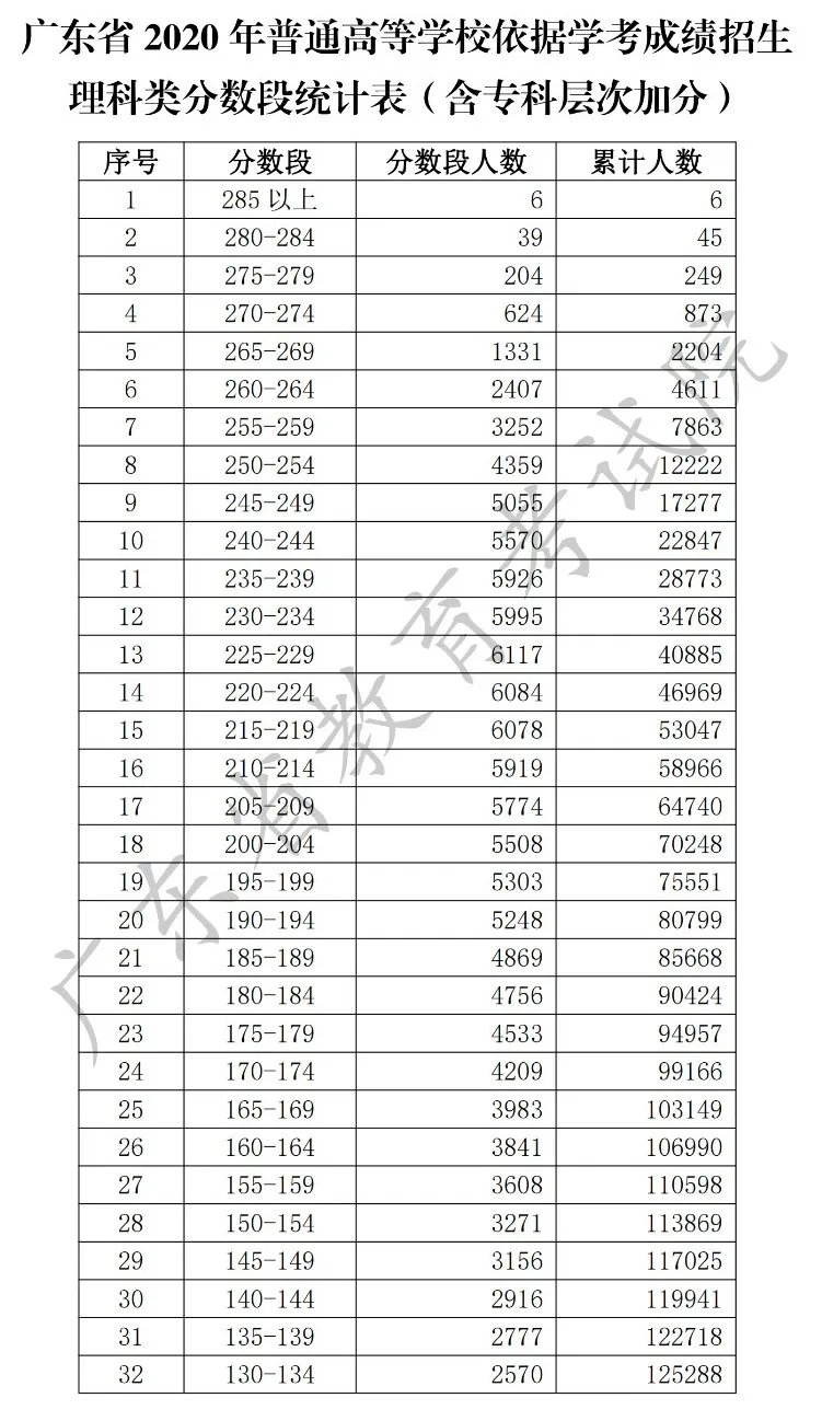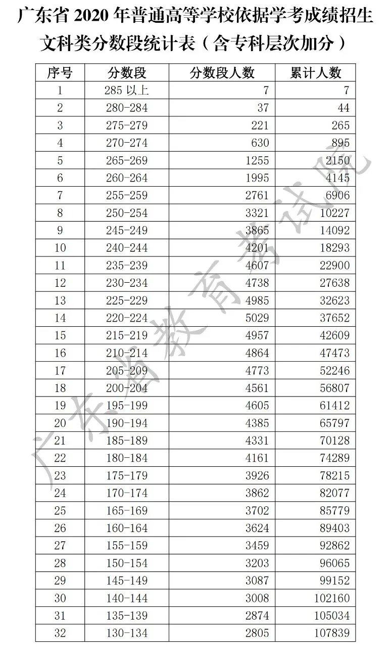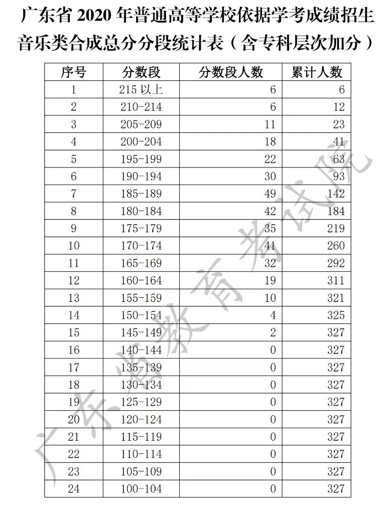 广东省教育考试院公布了2020年广东省普通高校春季高考分数段: