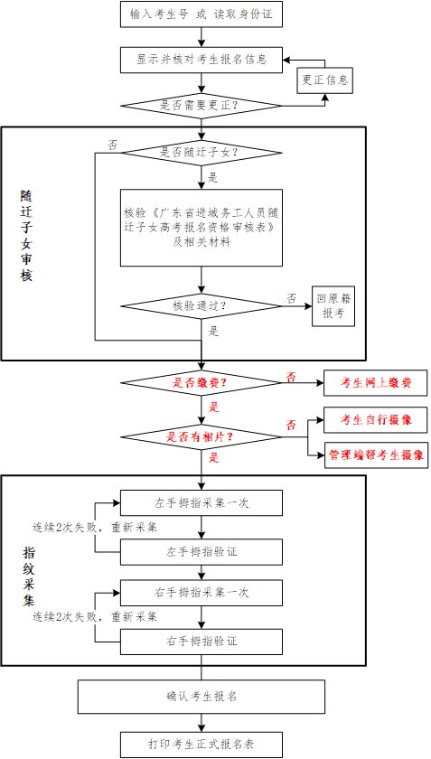 广东省2020年普通高考考生报名确认流程: