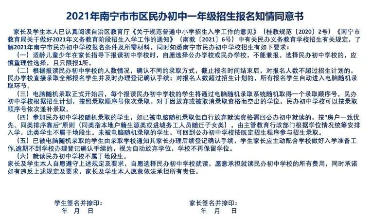注:现场报名的家长,如果是从邕外返邕,必须持有48小时核酸检测阴性报告。