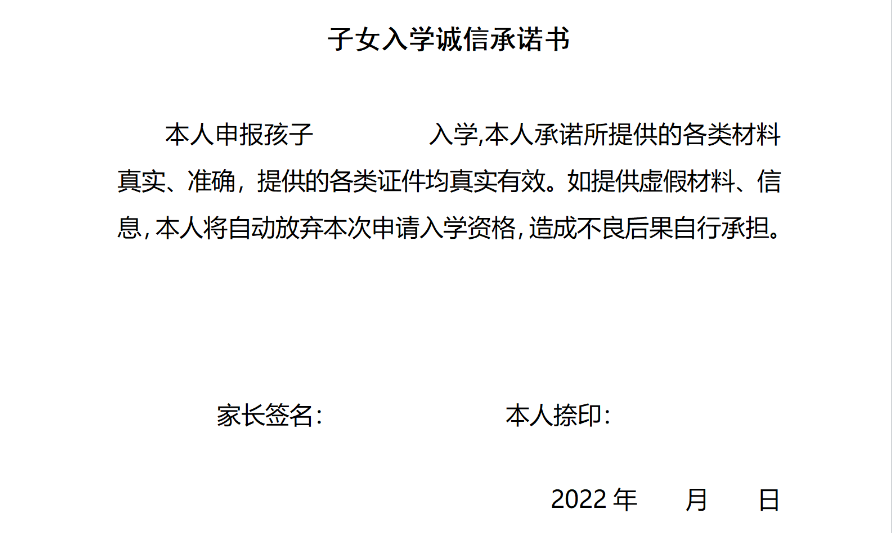 2022年南宁市子女入学诚信承诺书(2022年南宁市子女入学诚信承诺书下载)