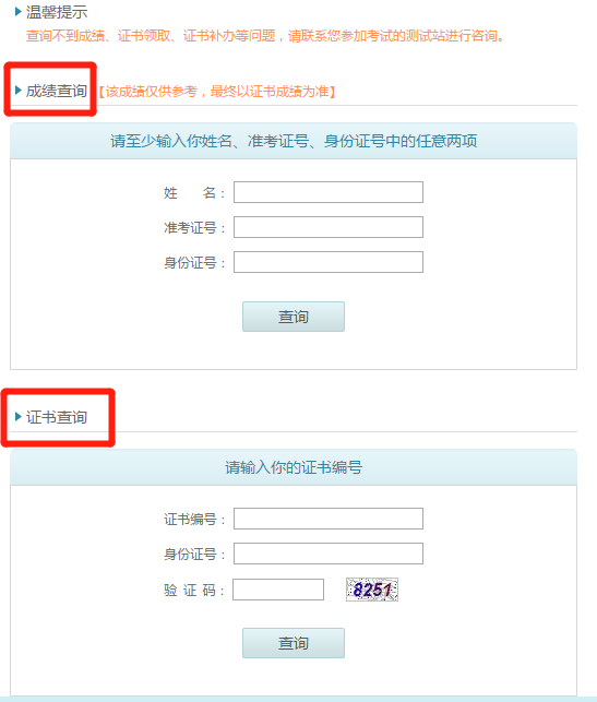 进入查询入口后,输入自己的准考证号和个人信息,查询普通话考试成绩,输入自己的证书编号和身份证号,还可以查询自己的普通话证书