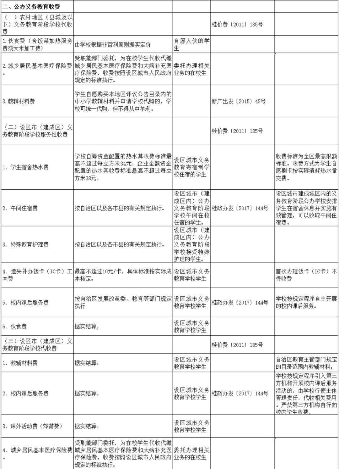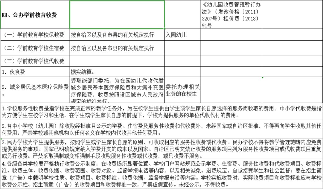 《关于公布广西公办学校教育项目收费清单的通知》(以下简称《通知》)近日印发,公布了广西公办学校教育项目收费清单,并提出要对各级各类公办学校收费项目进行清单管理,各中小学校(幼儿园)除教育项目收费清单外,未经国家或自治区批准,不得再收取其他任何费用,严禁学校或其他机构以任何名义在校内代收其他任何费用。