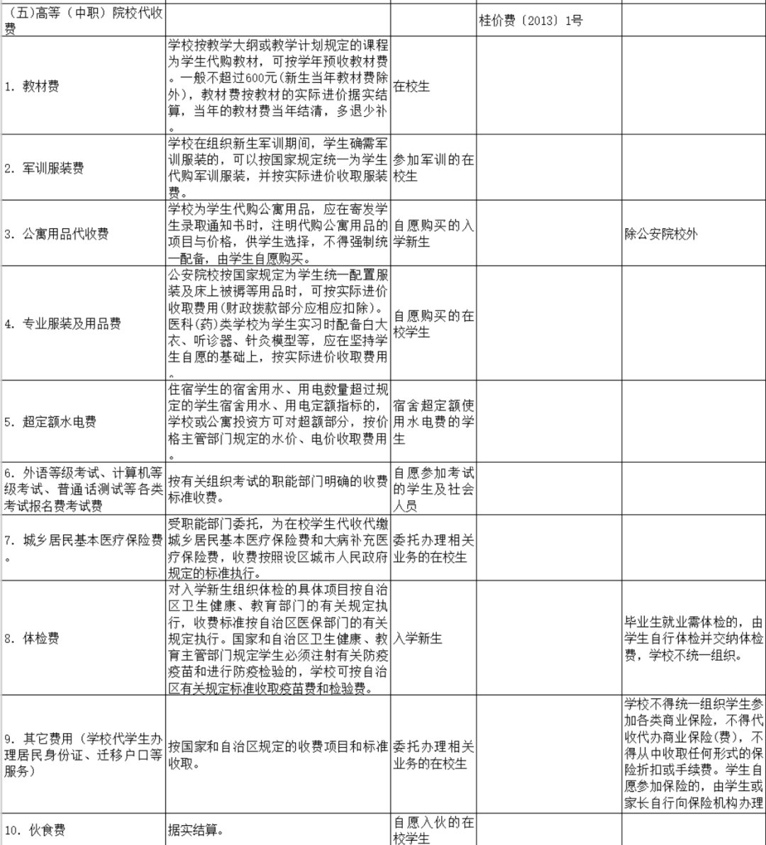 广西公办学校教育项目收费清单公布 广西学校学费