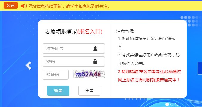 进入官网后,在志愿填报登录(报名入口)页面上输入用户名(准考证号);输入密码;输入图片验证码后点击票【登录】