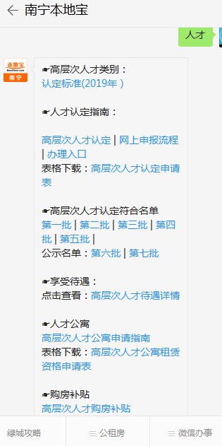 温馨提示:南宁市高层次人才认定怎么办理?微信搜索南宁本地宝公众号,后台回复【人才】,即可获取高层次人才认定标准、人才认定办理指南、高层次人才认定符合条件人员名单、还有高层次人才公寓申请指南,高层次人才购房补贴申请等相关信息~