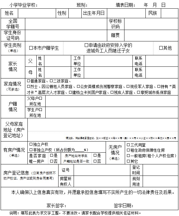 2.父母或其他法定监护人的房产登记信息材料(《房屋所有权证》《不动产权证书》或购房合同等)。