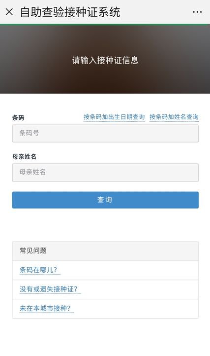 选择查验方式:条码+儿童姓名、条码+母亲姓名、条码+出生日期