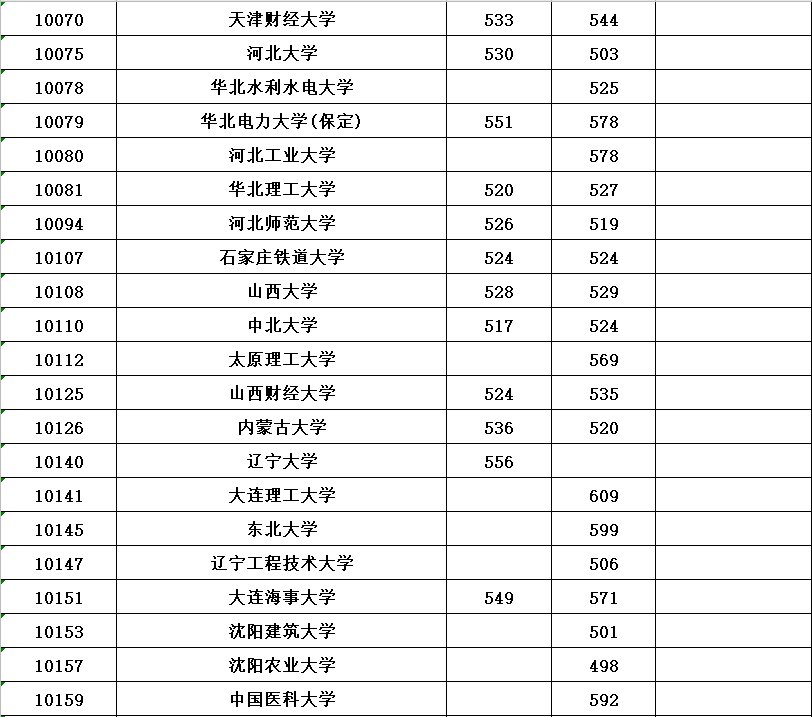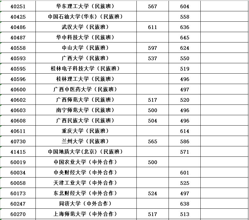 全国各所大学本科第一批具体分数线请看下表(表中空白处表示无出档考生)。