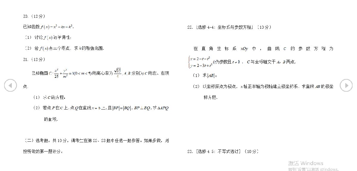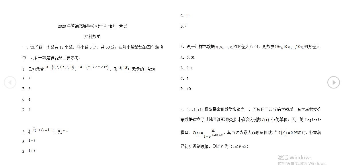 2020年广西高考数学真题及答案 2020年广西高考数学真题及答案详解