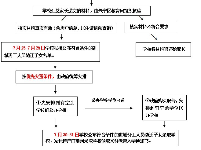 (一)7月25日-7月26日,各小学将核准后的本市户籍新生名单张榜公布,并发放义务教育入学通知书(家长持户口簿领取);同时公布符合条件的进城务工人员随迁子女名单。