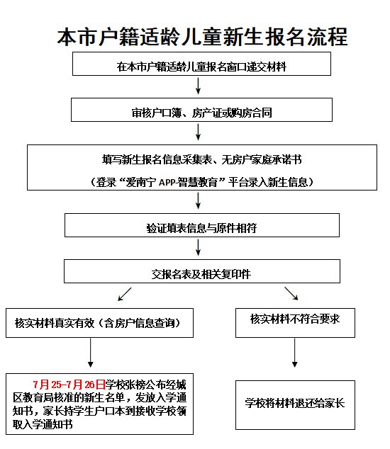 (一)7月25日-7月26日,各小学将核准后的本市户籍新生名单张榜公布,并发放义务教育入学通知书(家长持户口簿领取);同时公布符合条件的进城务工人员随迁子女名单。