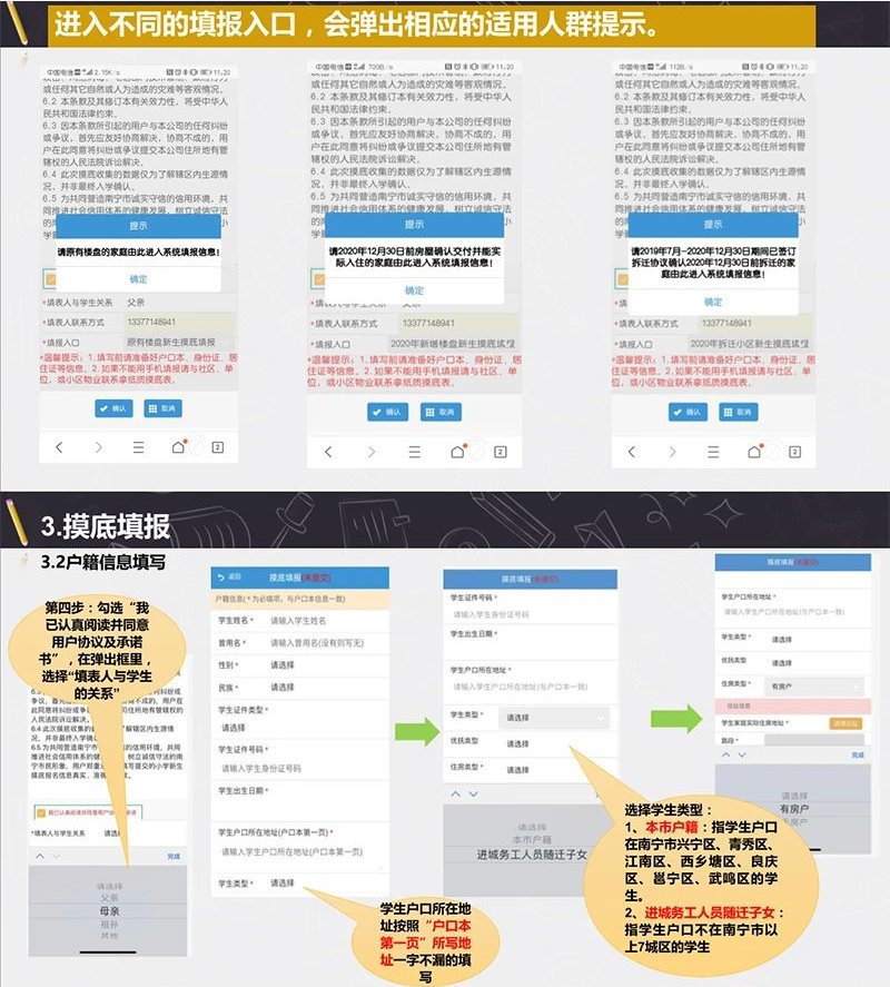 2020年南宁江南区小学新生入学摸底调查填报流程