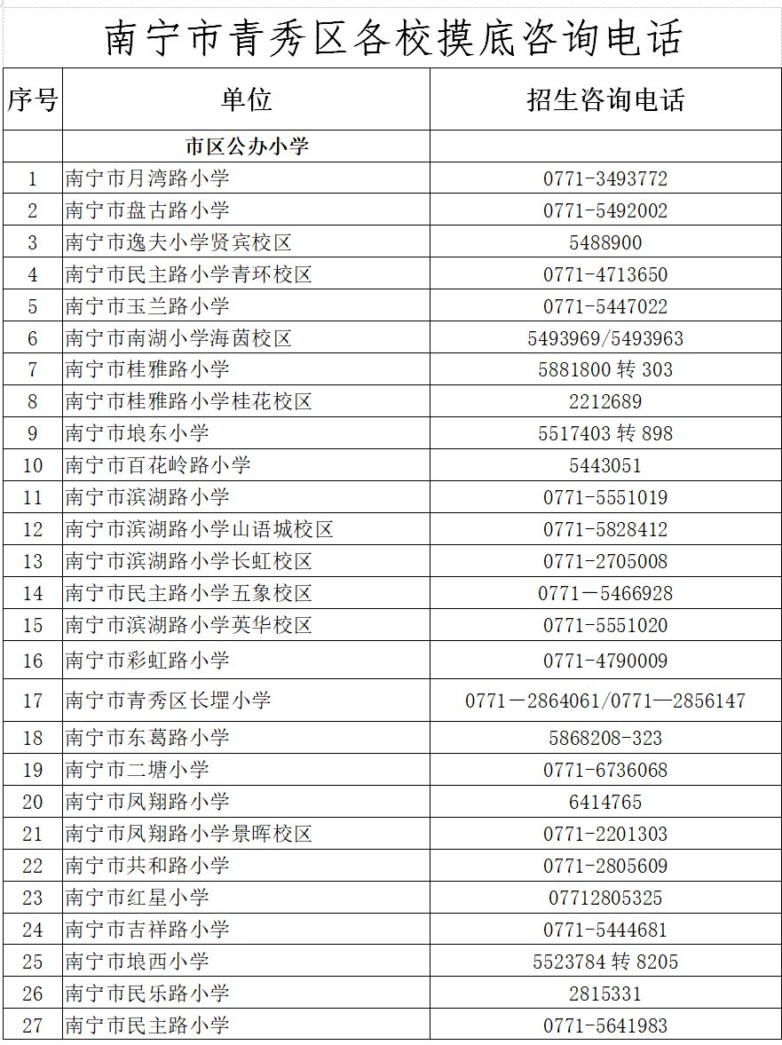 南宁市青秀区各校摸底咨询时间