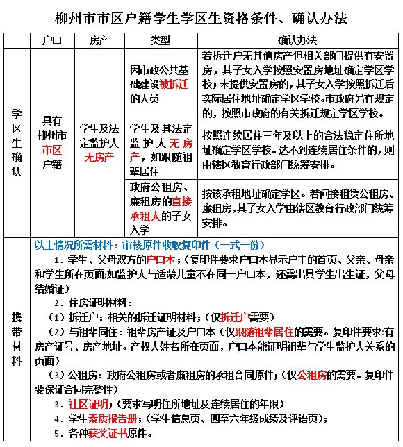 1.柳州市区户籍学生:对以上条款未涉及到的情况,由辖区教育行政部门协调、统筹安排。凡接受统筹安排的学生仍然认定为学区生。