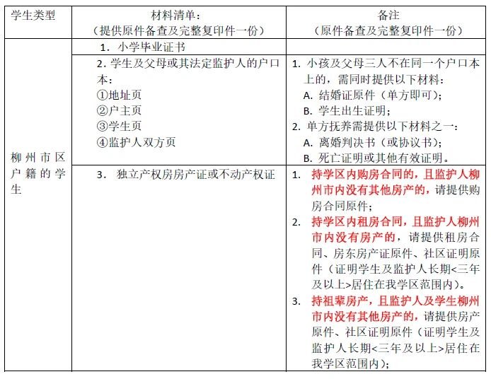 非柳州市户籍(随迁子女)学生报名所须提交的材料: