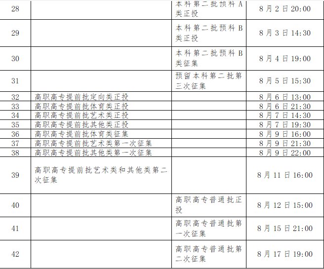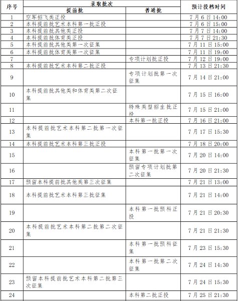 1.本表所列仅为录取工作计划时间,由于录取进程受多因素影响,个别批次实际投档录取时间变化的可能较大。如当前批次的录取进程延误,将影响下一批次或后续多批次的投档时间。