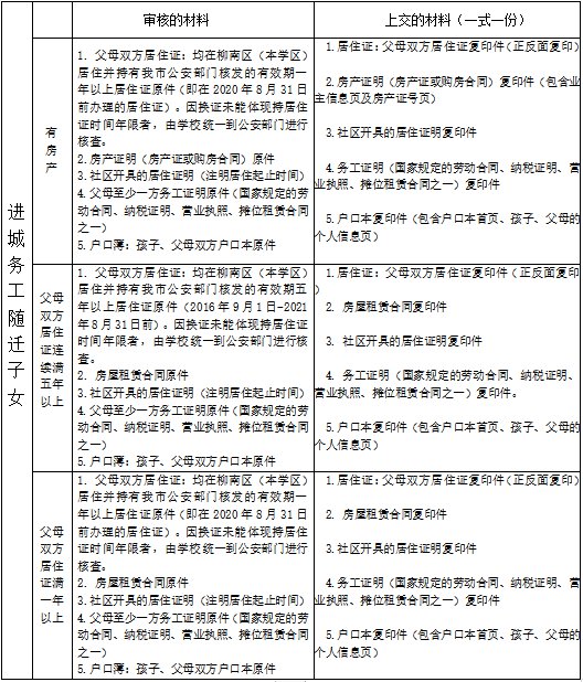 进城务工随迁子女报名资料: