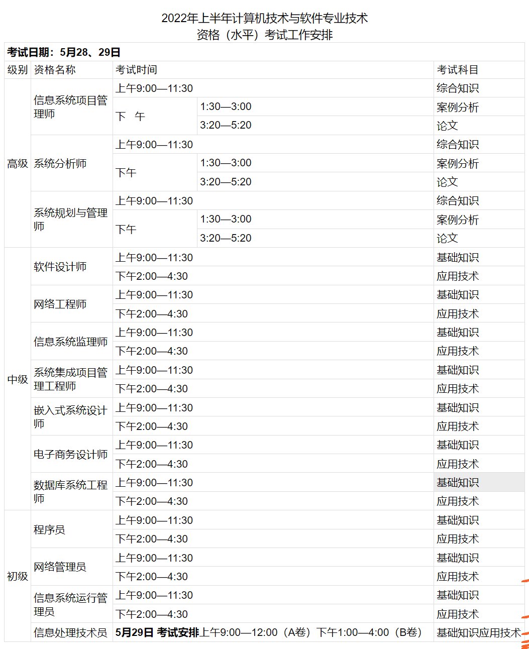 附件:1.2022年上半年计算机技术与软件专业技术资格(水平)考试工作安排