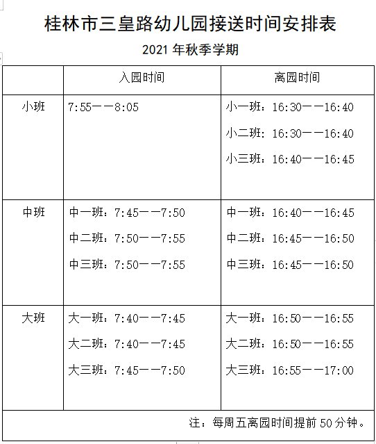 2021桂林三皇路幼儿园接送时间安排表(桂林市三皇路幼儿园招生简章)