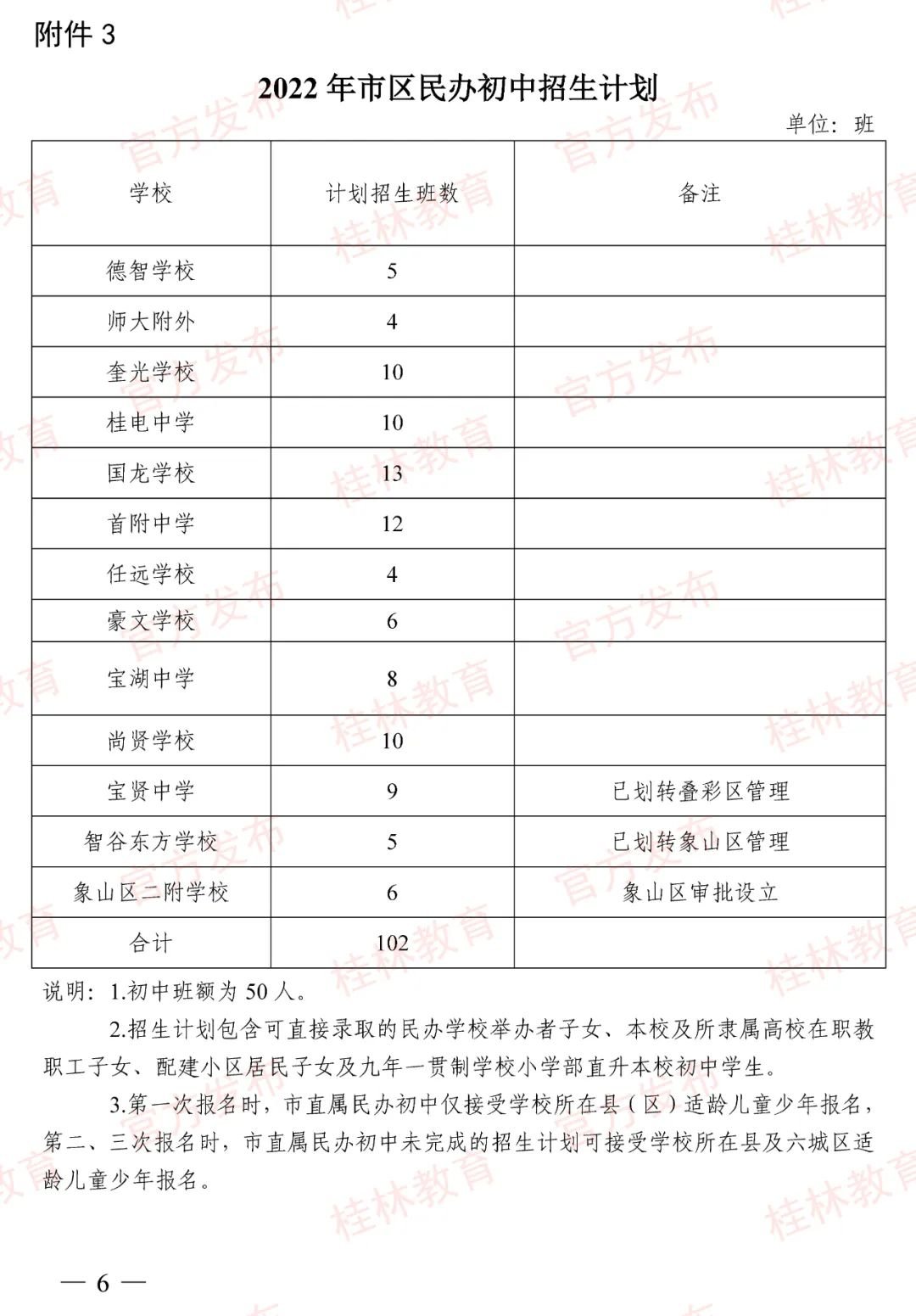 二、根据《桂林市教育局关于做好2022年市直属义务教育学校和市区初中招生入学工作的通知》(市教办〔2022〕12号)精神,民办初中“2022年将不低于学校招生计划70%的学位用于优先满足学校所在县(区)招生,招生具体比例由学校申报并经市教育局同意后确定,从2023年起,这一比例将根据县域学位供需情况逐步提高;剩余学位由学校申报经市教育局同意后可面向六城区适龄儿童少年招生”。据此,经学校申报,我局核准,同意将2022年市直属民办初中所在县(区)招生比例确定为70%。