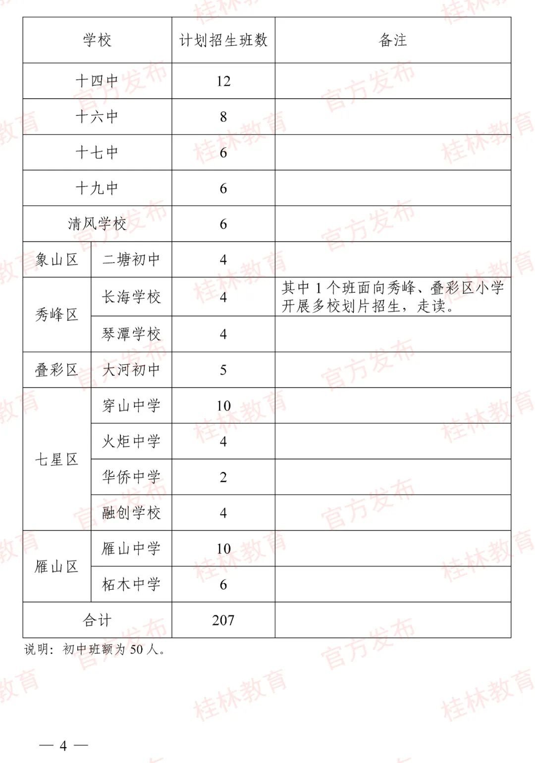 2022年桂林市公办初中招生计划(2021桂林中学初中部招生)