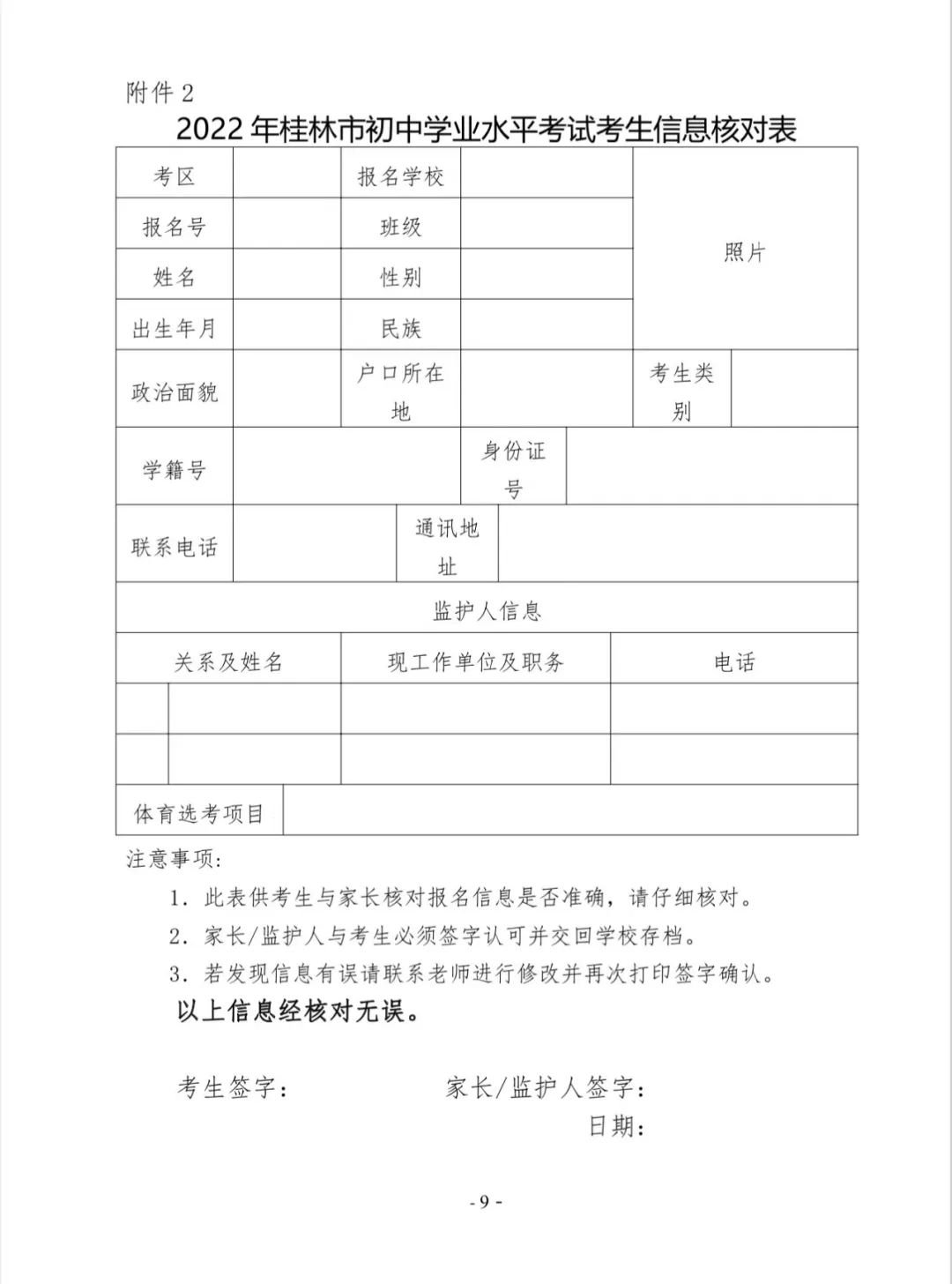 2.不在桂林市学校就读的九年级考生,由就读学校开具注明学籍号的学籍证明;