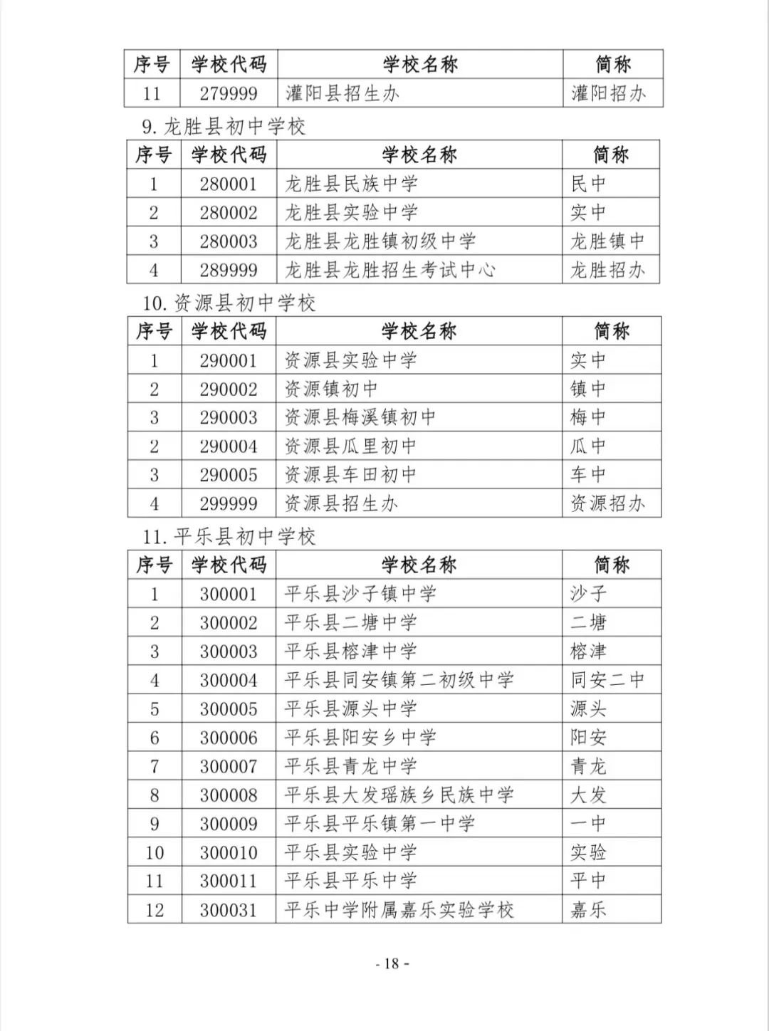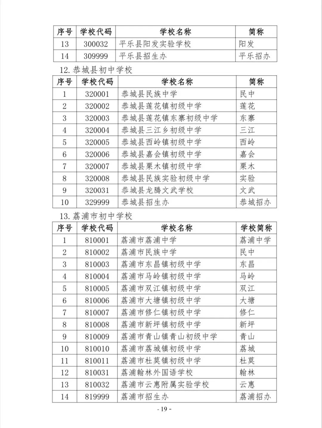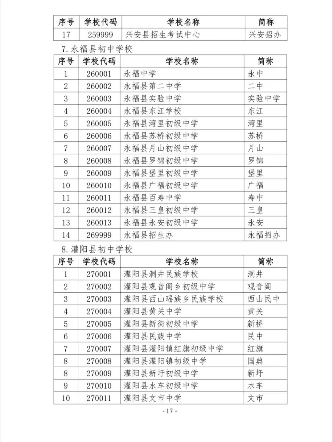 桂林市初中学校代码表