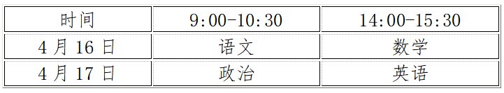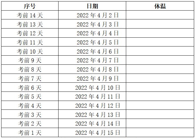注:考生请于4月16日首场考试进场时提交本表给监考员。