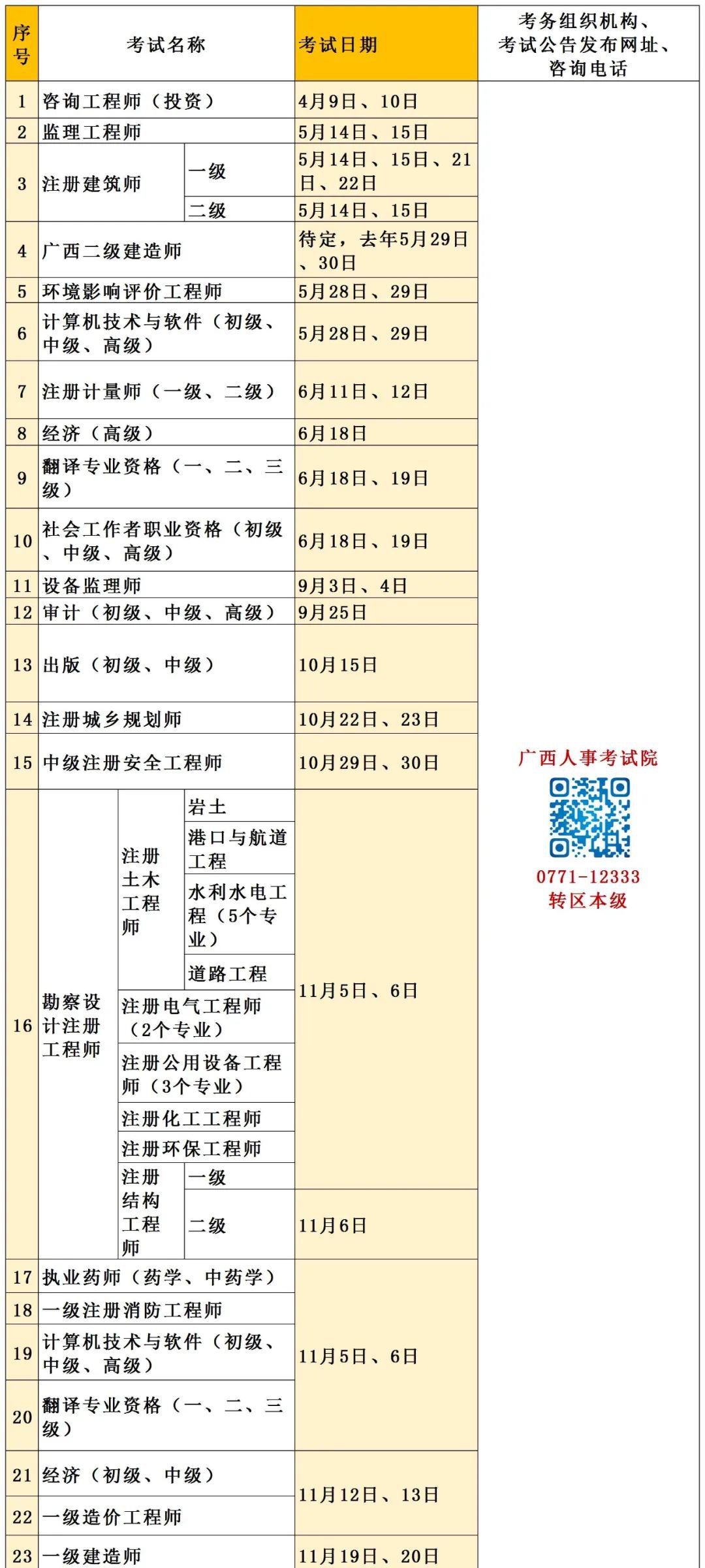 2022年度广西专业技术人员职业资格考试工作计划