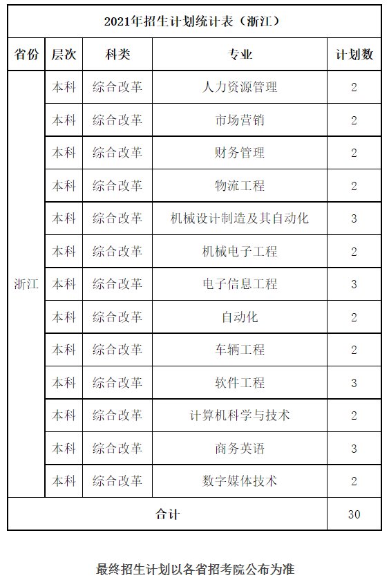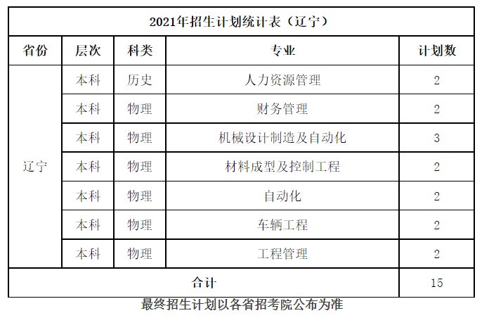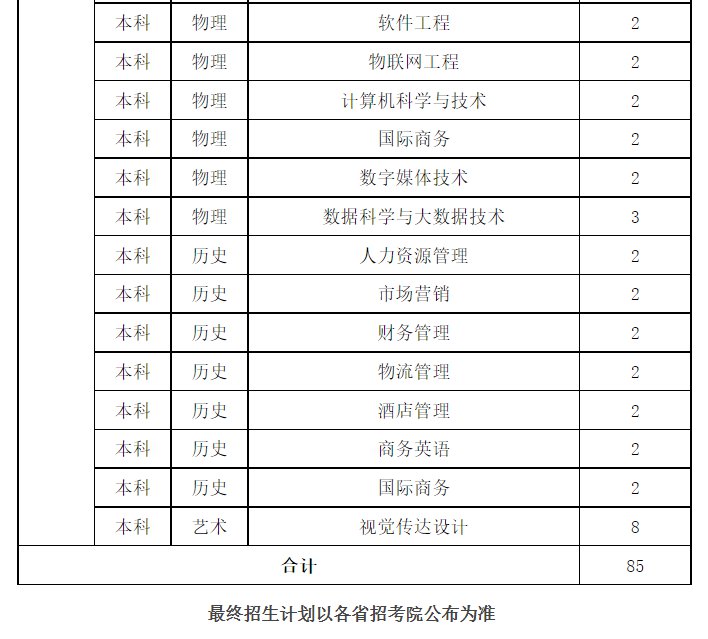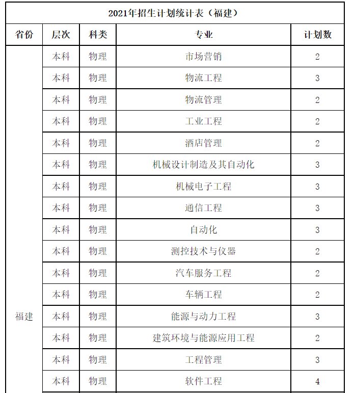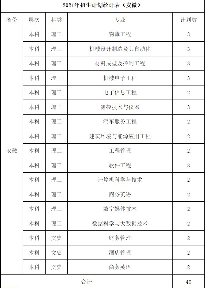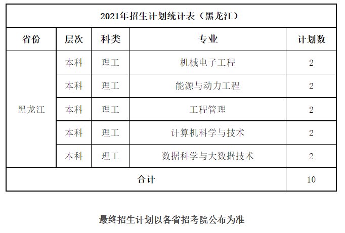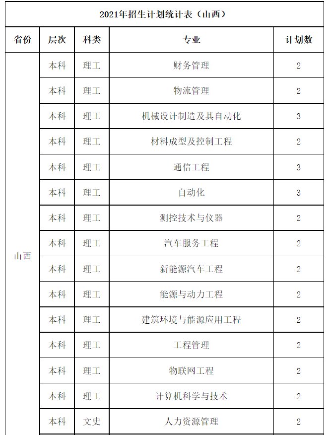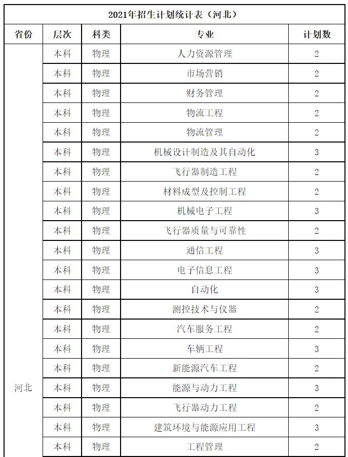桂林航天工业学院2021年招生计划统计表
