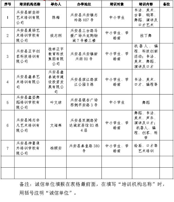 桂林市兴安县校外培训机构白名单(兴安培训学校)