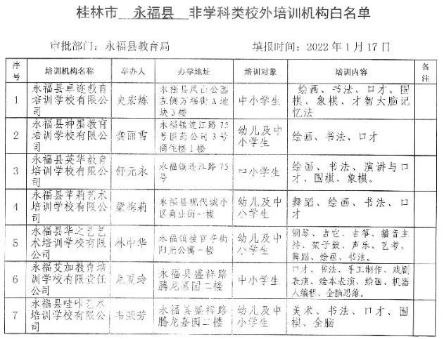 桂林市永福县校外培训机构白名单(桂林永福学校)