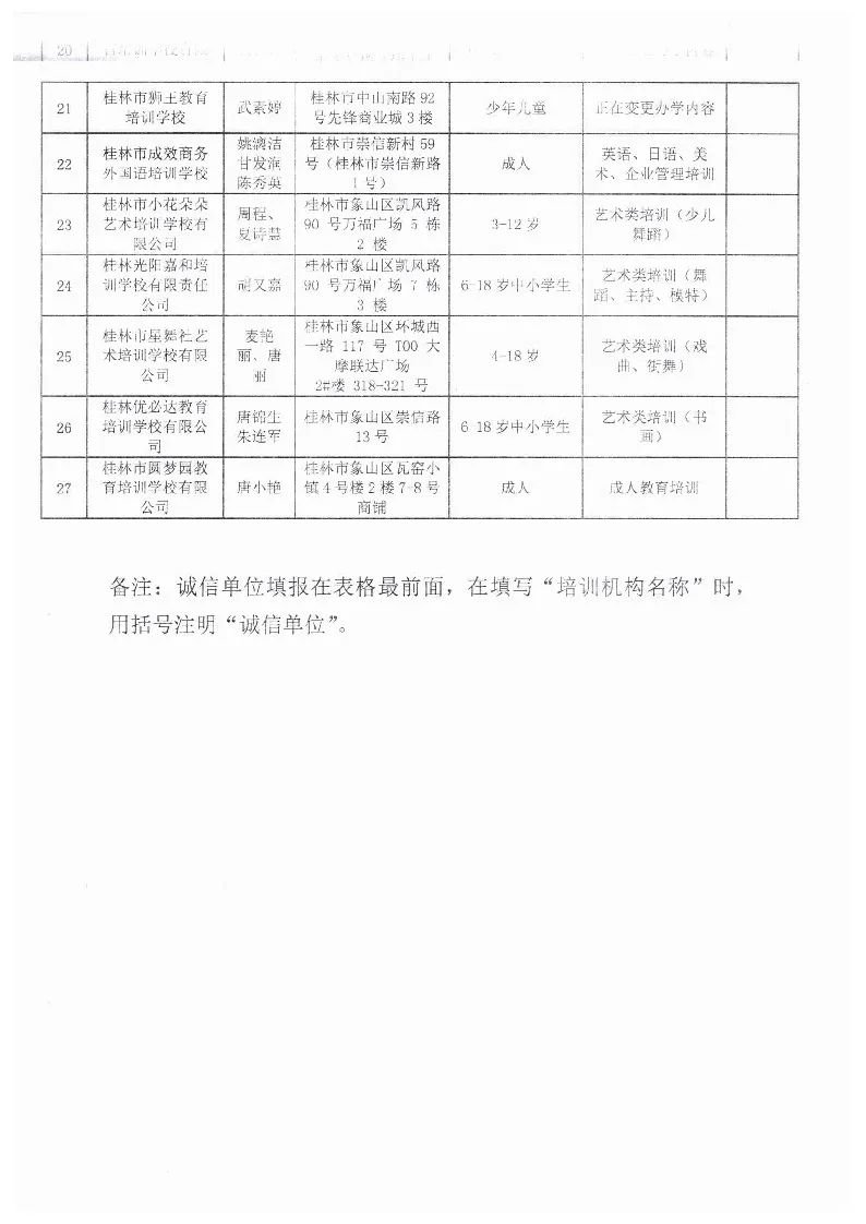 桂林市秀峰区校外培训机构白名单 桂林市培训机构电话