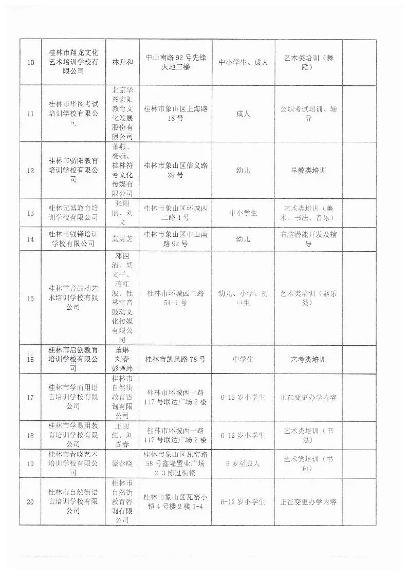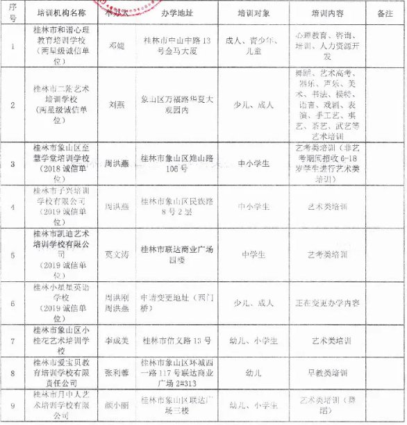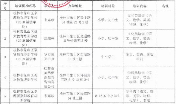 桂林市雁山区校外培训机构白名单 桂林市校外培训机构黑白名单