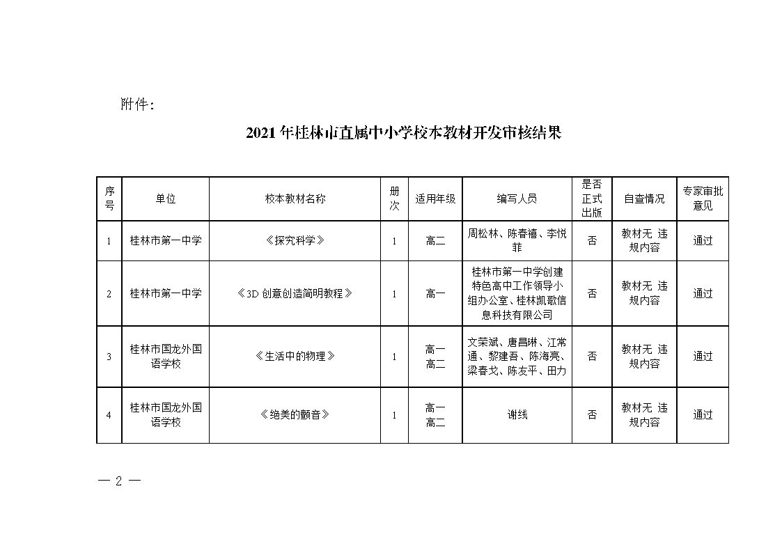 附件: 2021 年桂林市直属中小学校本教材开发密校结果