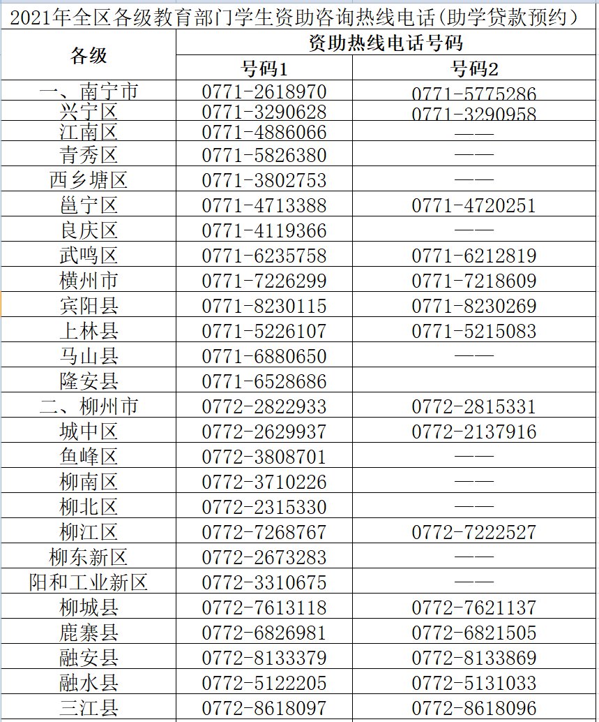 2021广西各地助学贷款联系电话(广西2021年国家助学贷款申请时间)