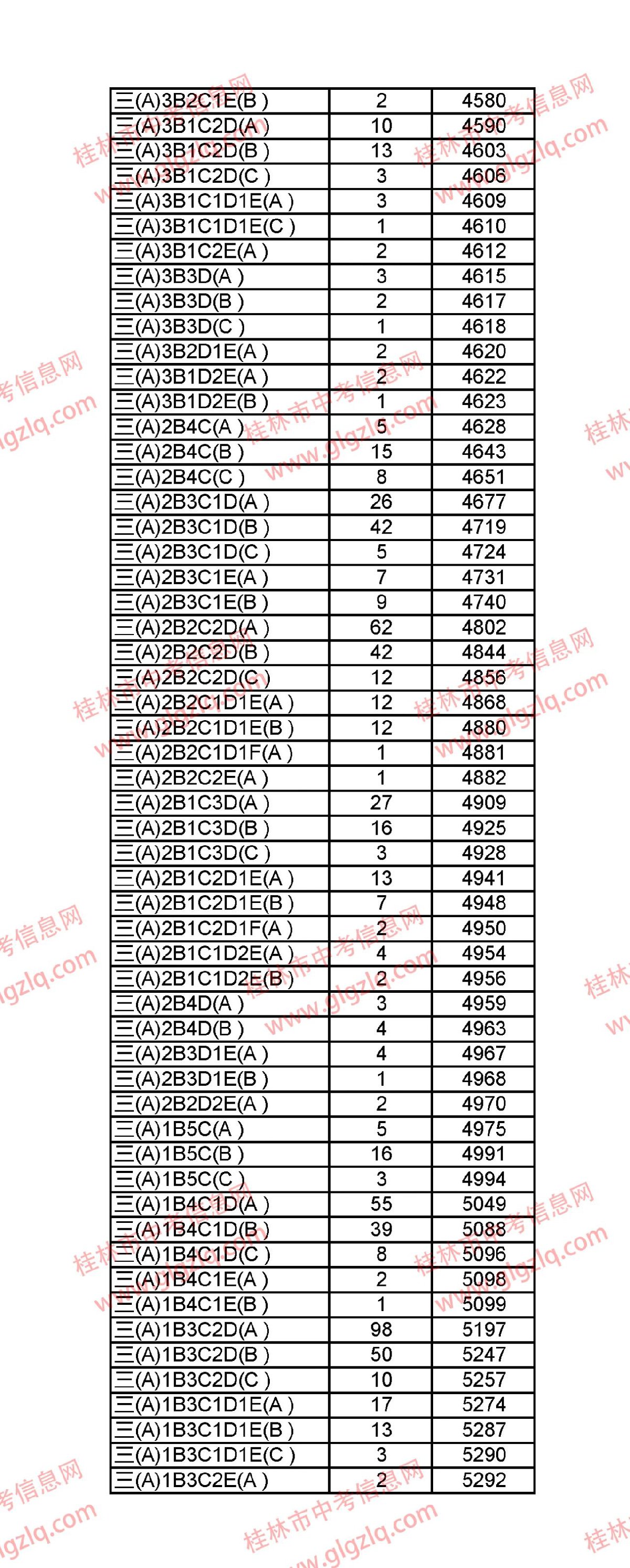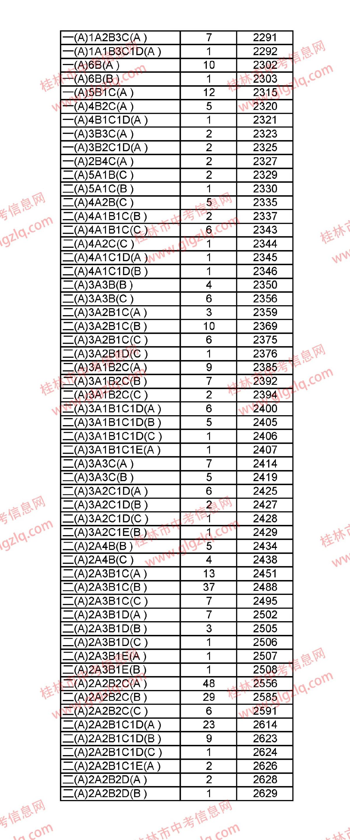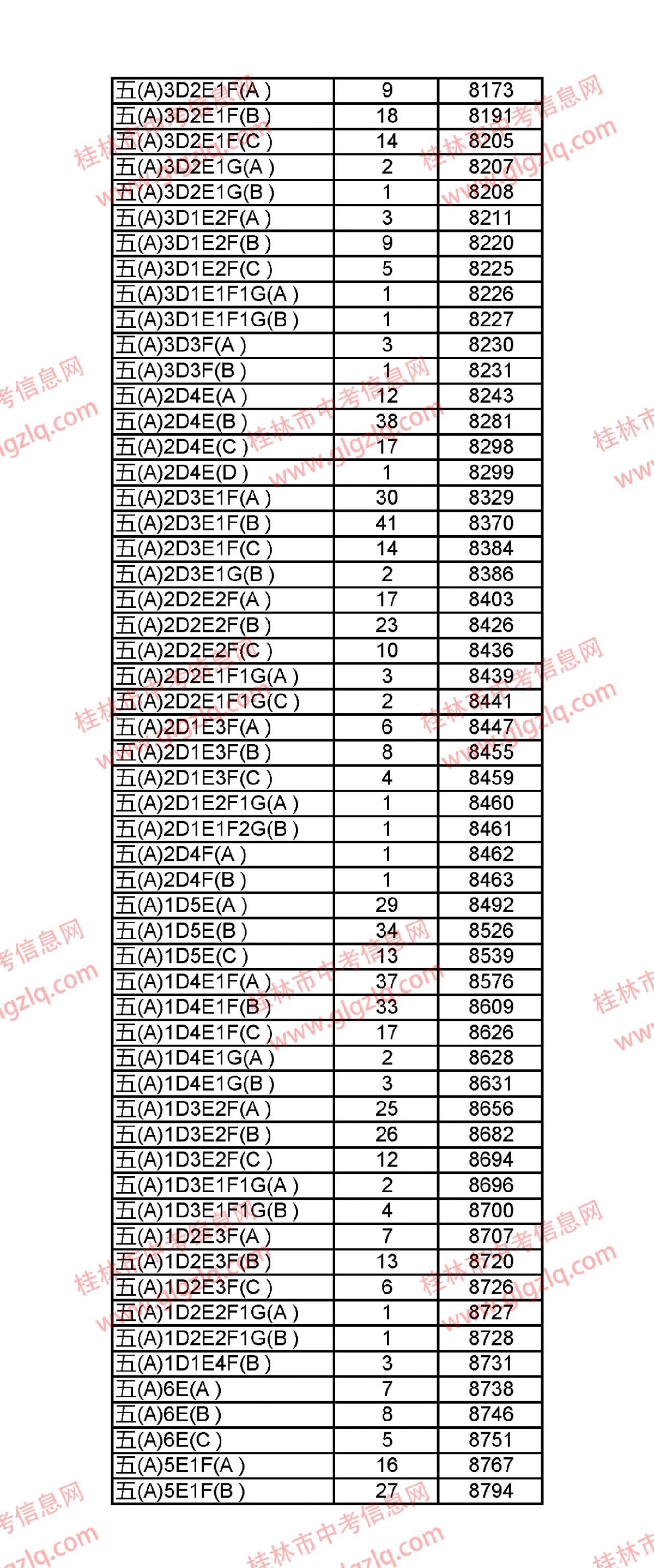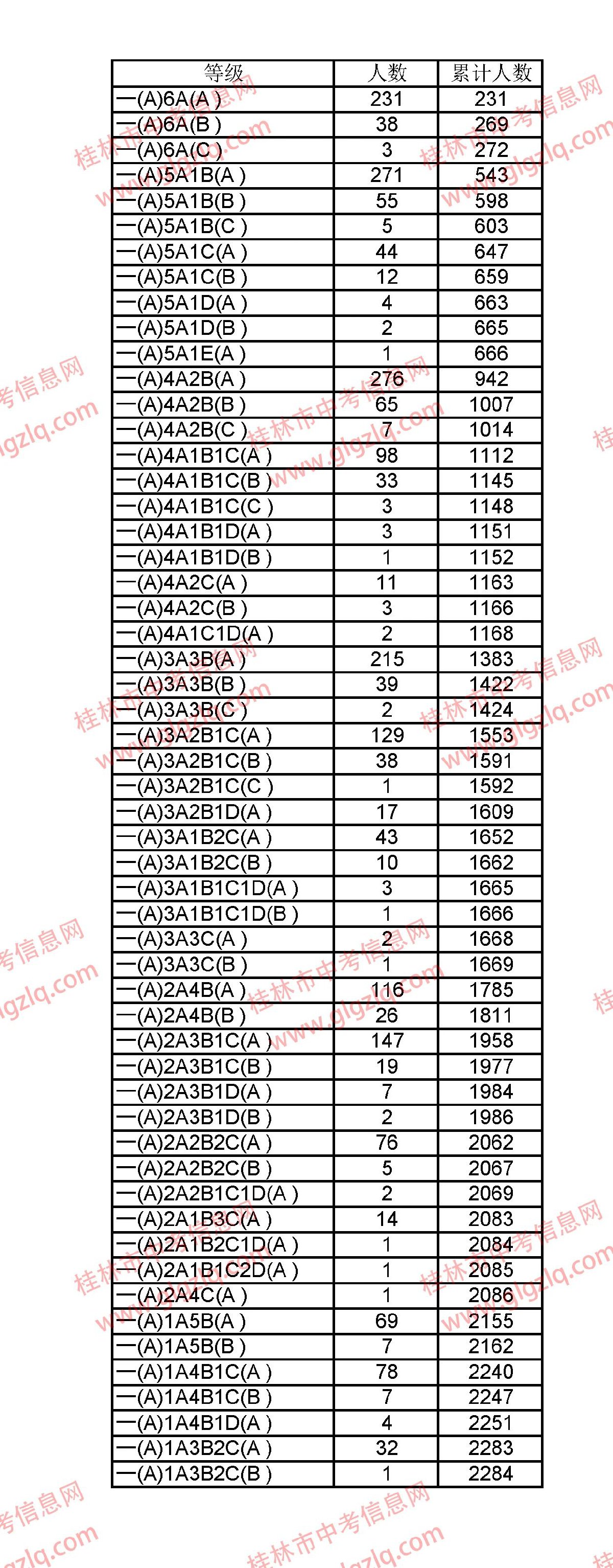 2021年桂林五城区中考一分一段表 桂林市2021年中考一分一档