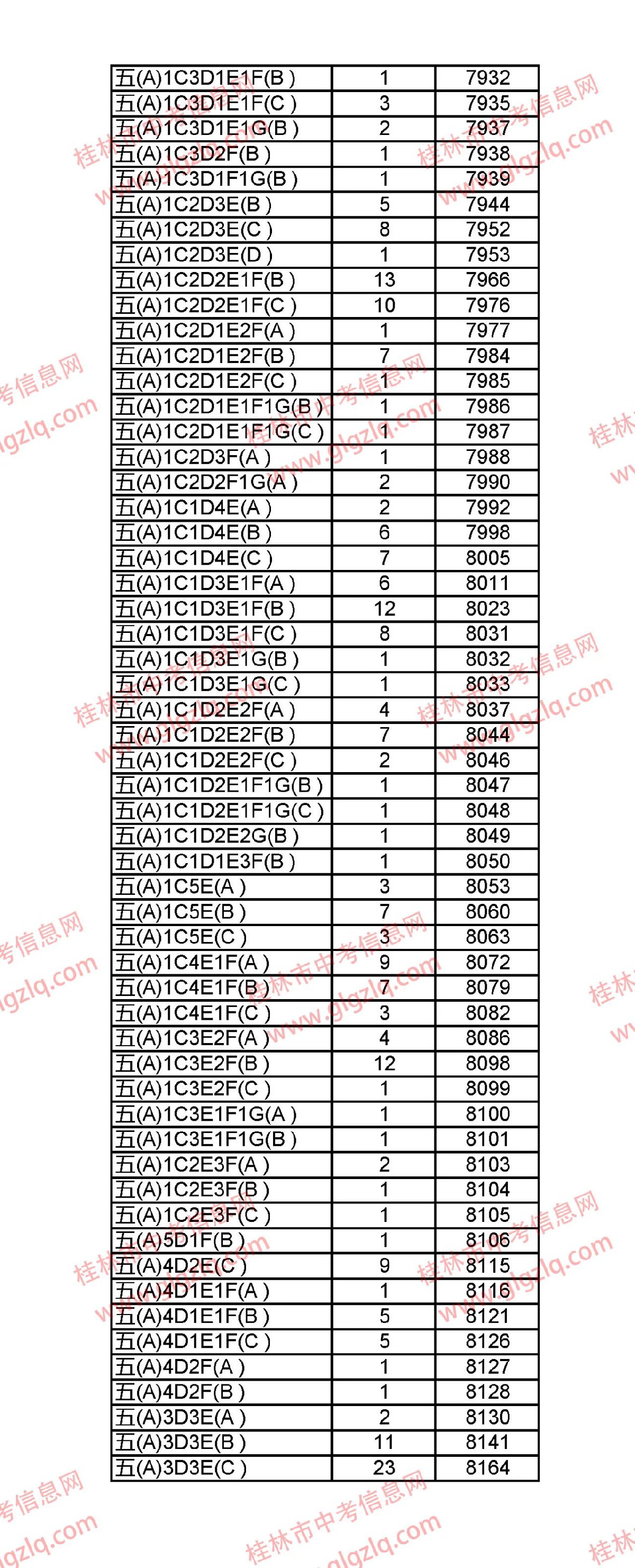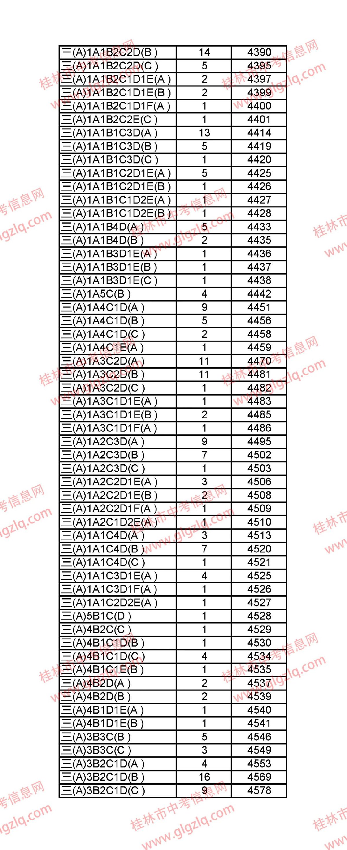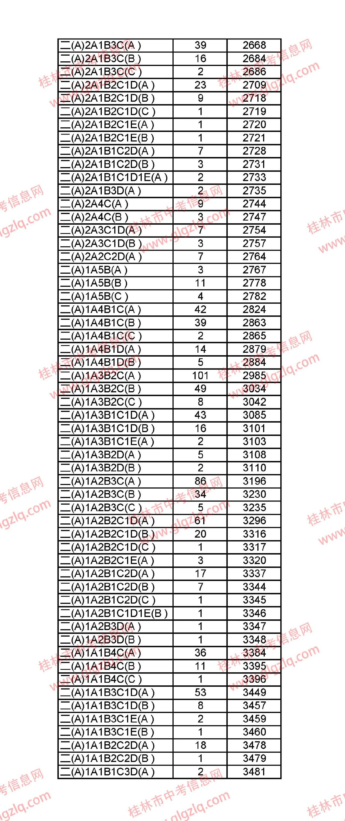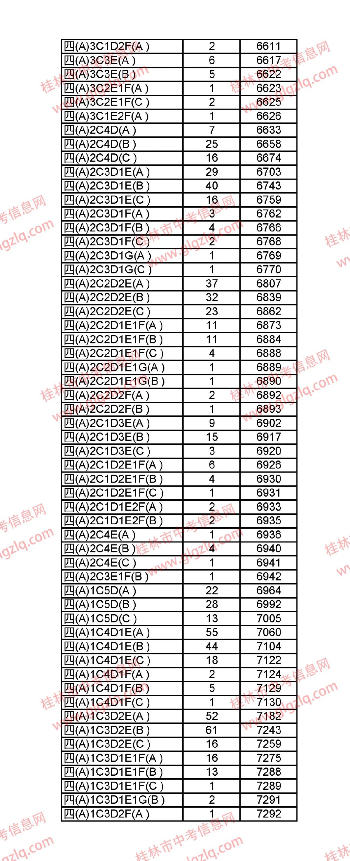 2021年桂林五城区中考一分一段表 桂林市2021年中考一分一档
