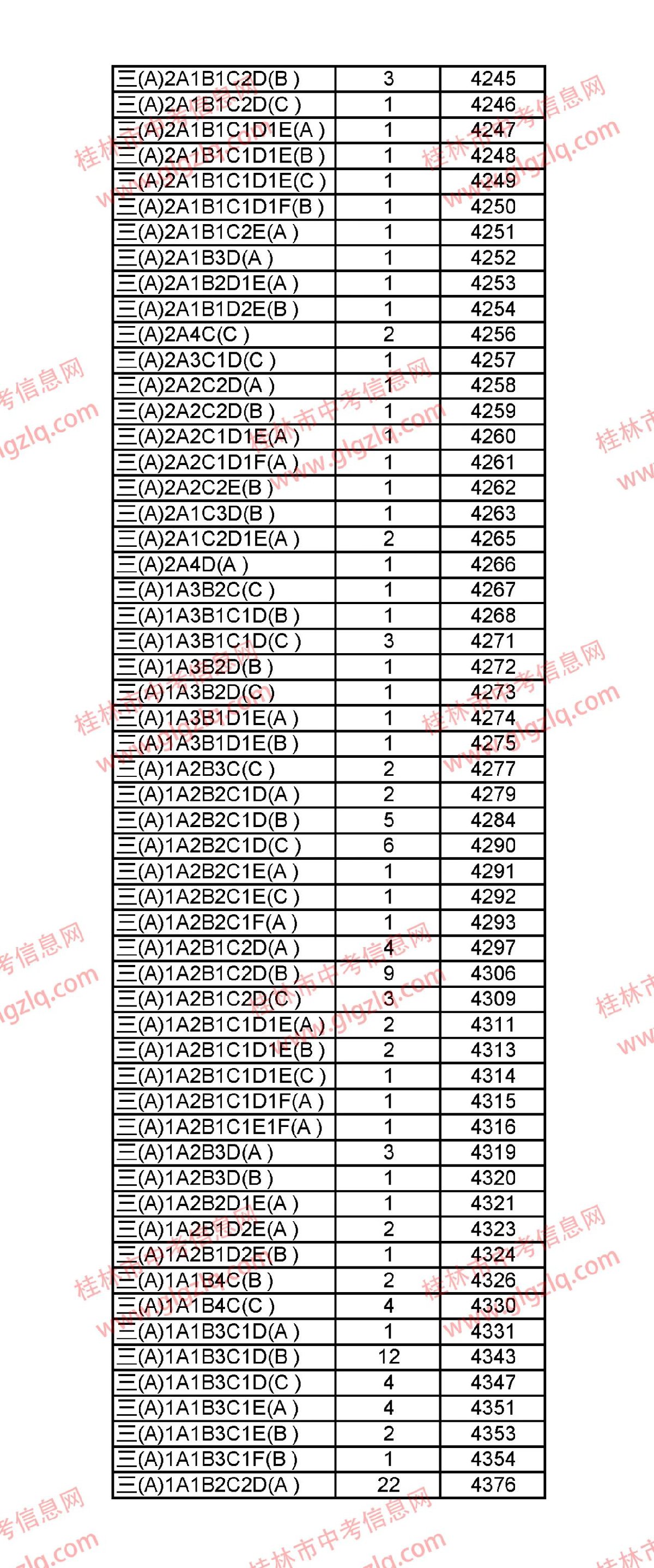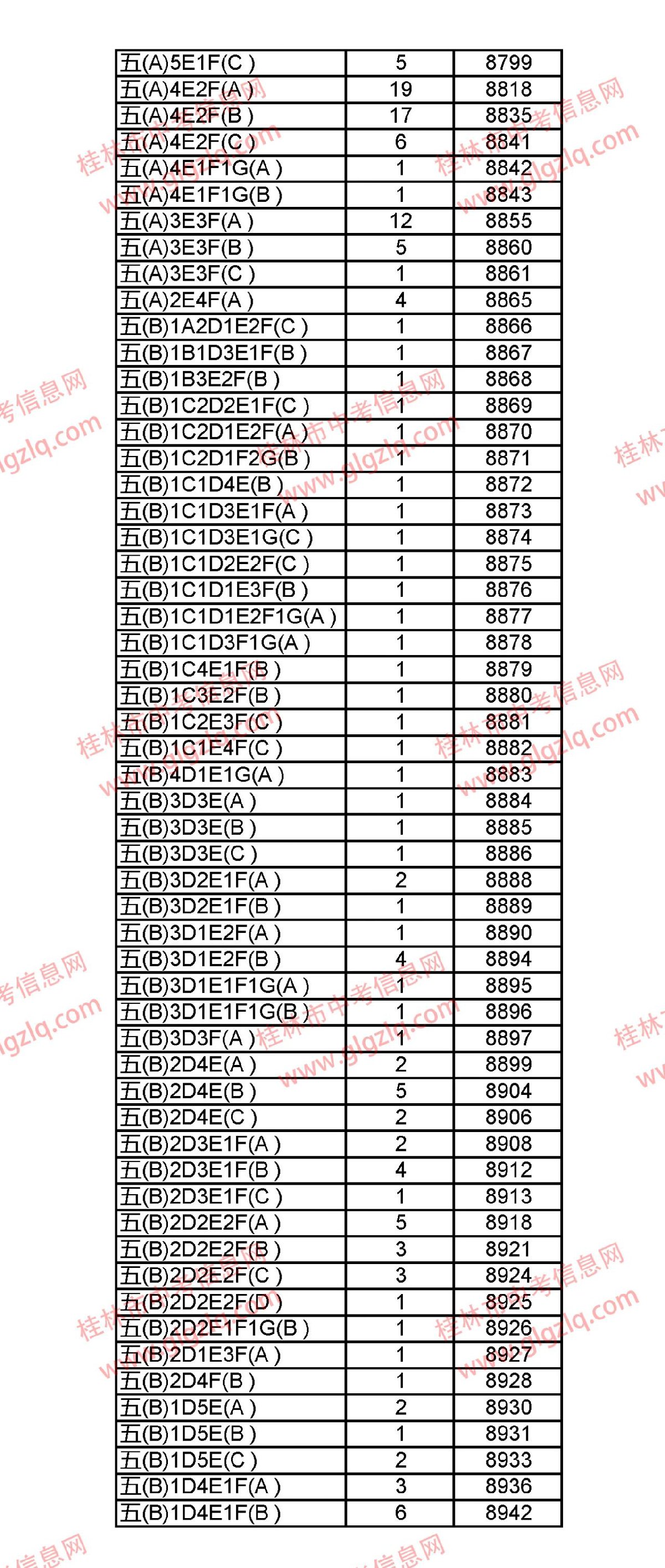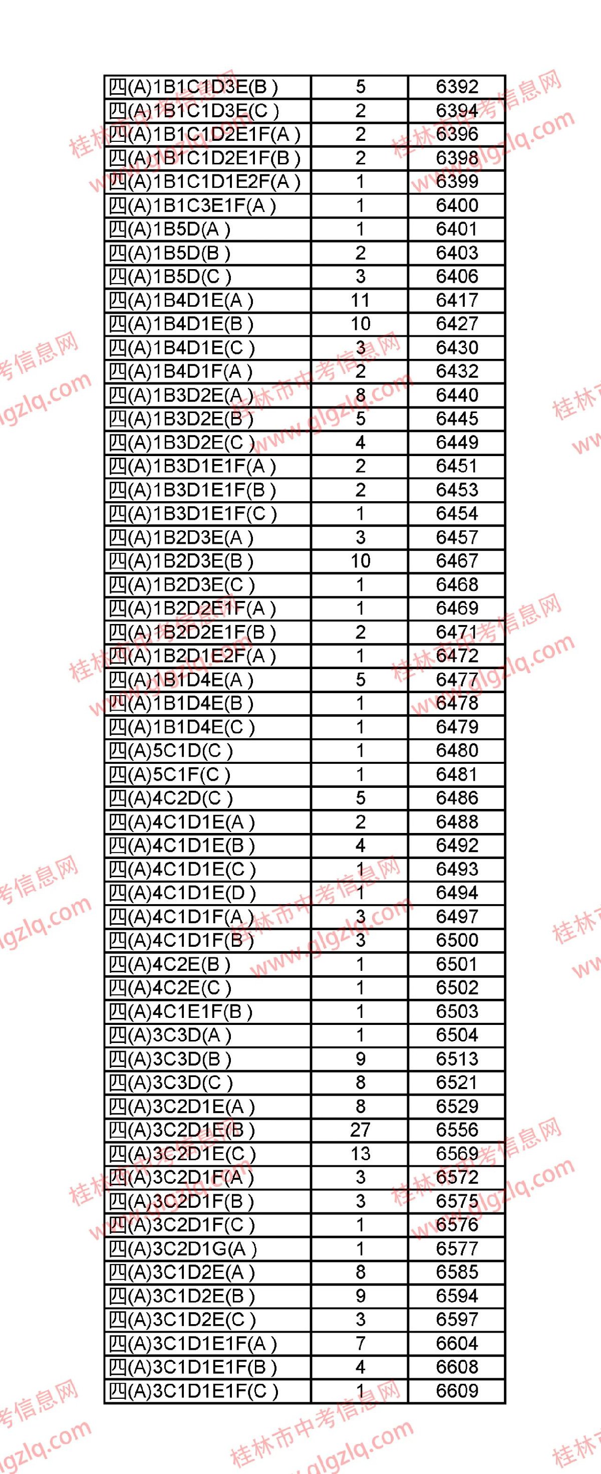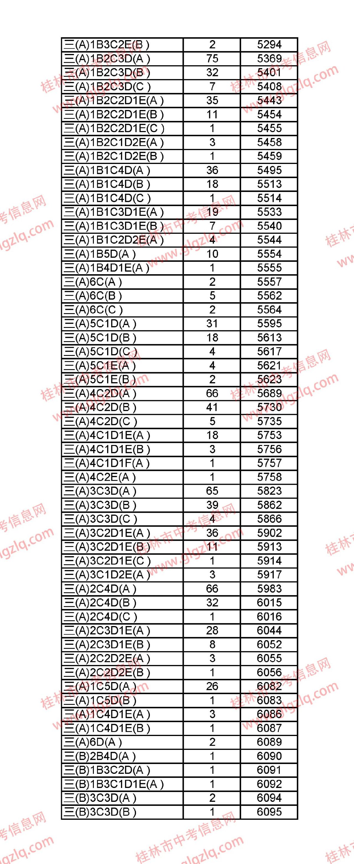 2021年桂林五城区中考一分一段表 桂林市2021年中考一分一档