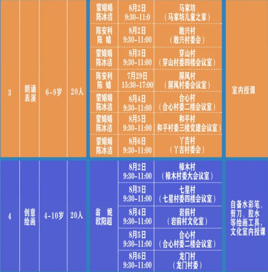 活动安排表: