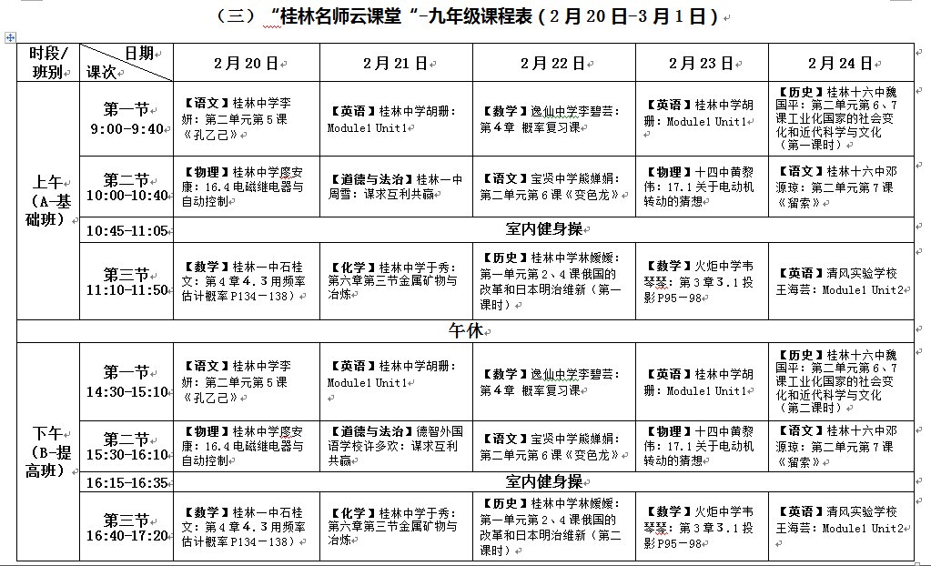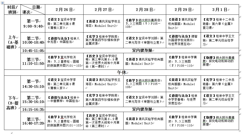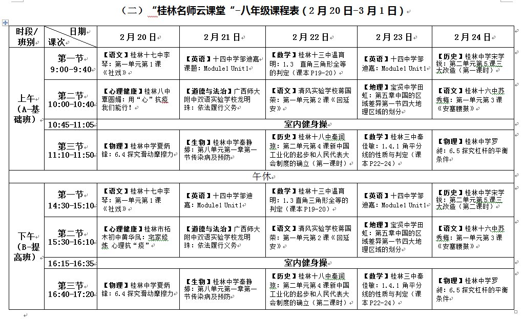 桂林名师云课堂第二阶段课表 桂林名师云课堂下载安装