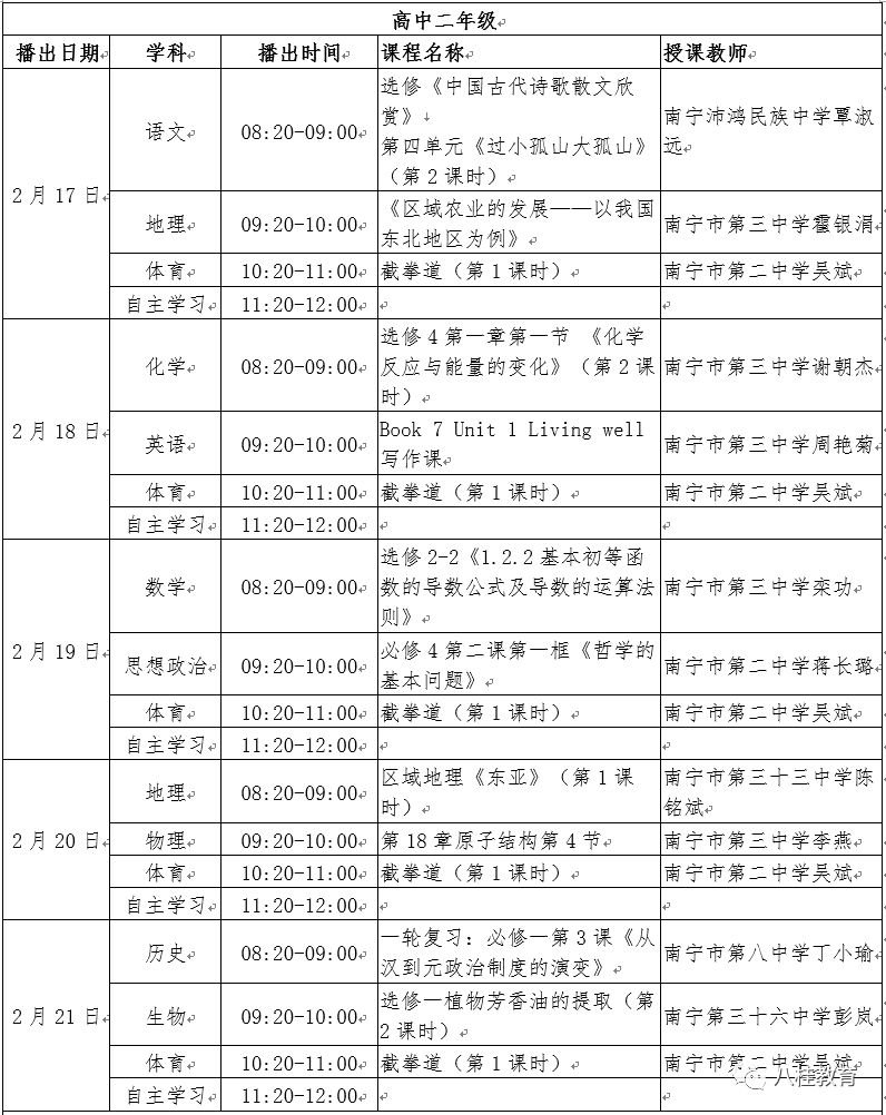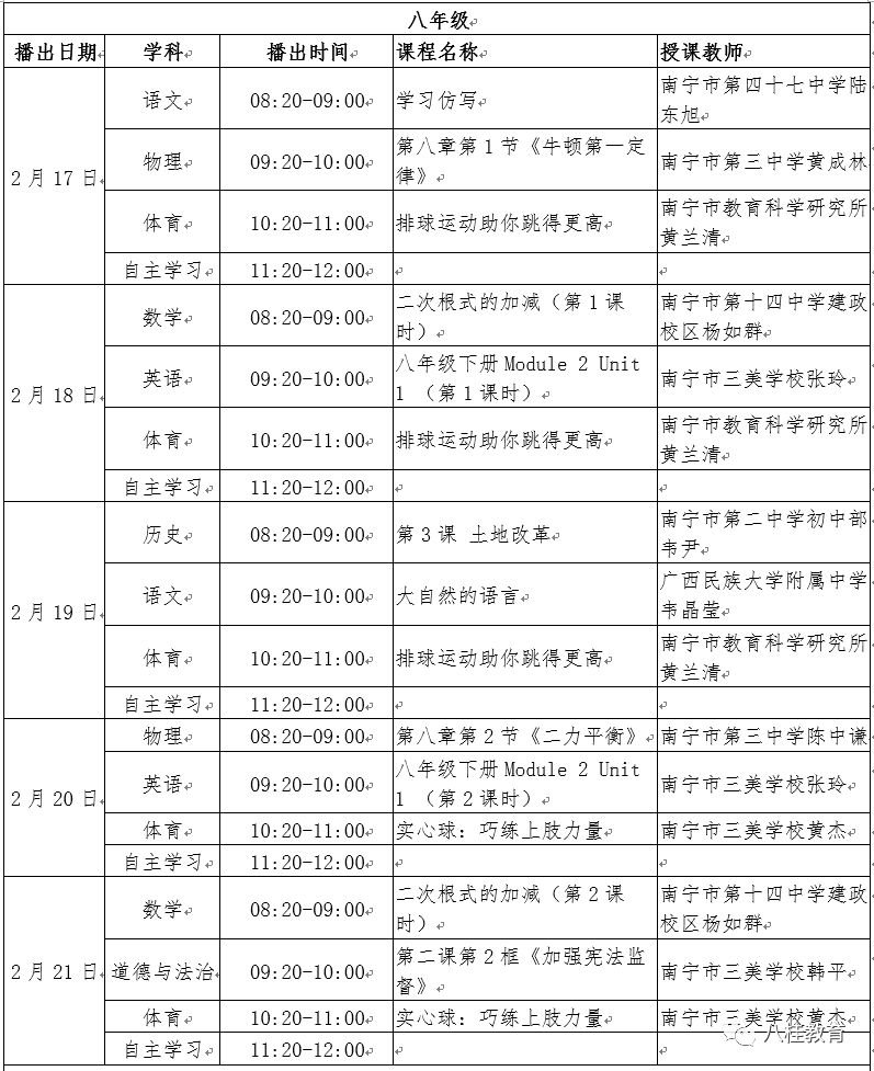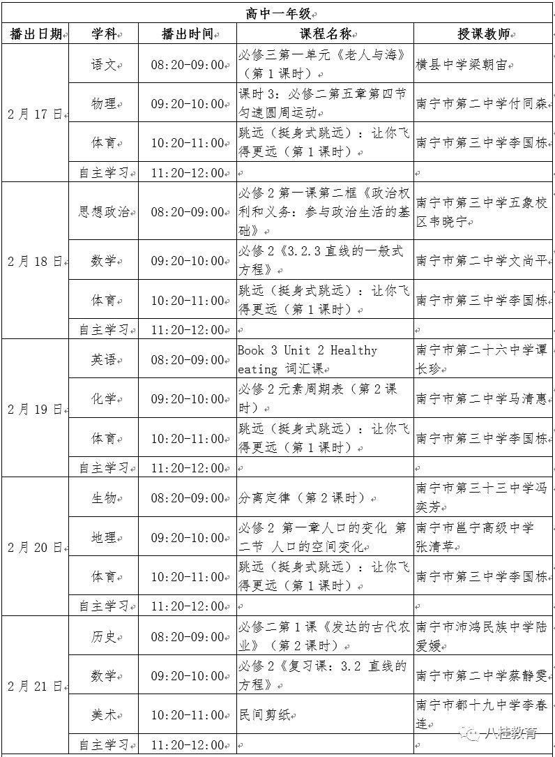 广西空中课堂课程表(广西空中课堂课程表3月1)