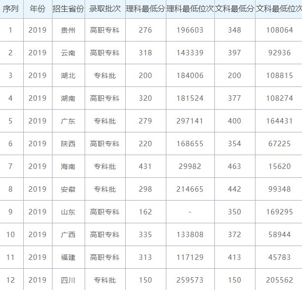 2019年南宁职业技术学院各省录取分数线及录取位次
