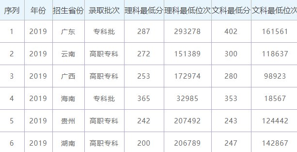 2019年广西交通职业技术学院各省录取分数线