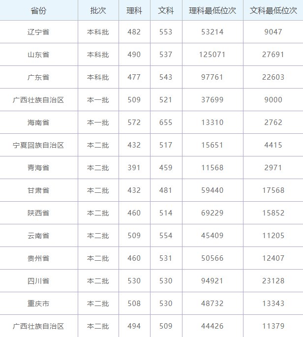 2019年广西民族大学在全国各省区有多批次的录取情况,详细情况可以参看下面这个图表。