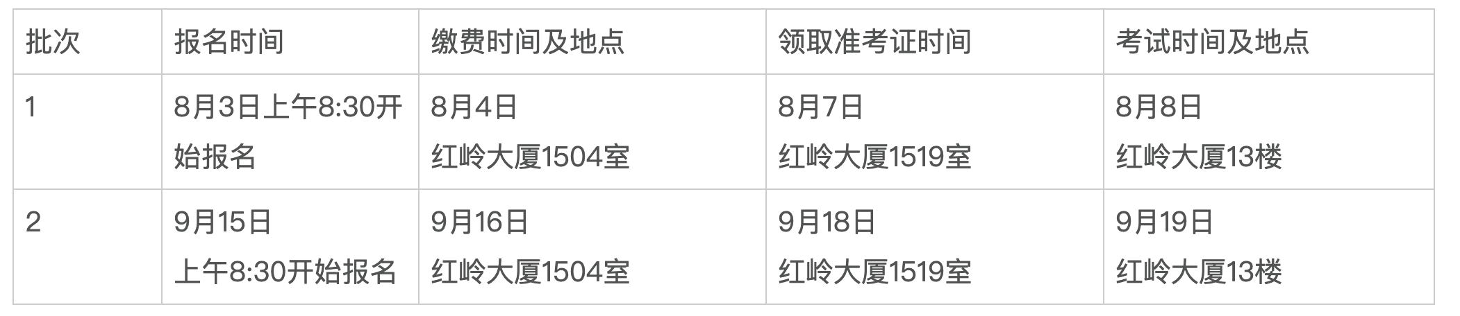 特别说明:每批次报考时间从报考当天的早上8:30开始,报完即止,每批次考试名额为350人。
